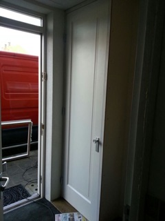 Deze kozijnen en deuren zijn op maat gemaakt in de werkplaats waarna ze alleen in de woning allen maar hoefde te monteren.