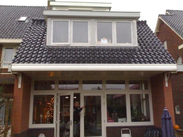 Een uitbouw met daarop een ruime kamer in Zwanenburg.